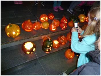 Ve čtvrtek 30. října 2014 jsme se opět sešli s dětmi i jejich rodiči při vykrajování dýní. Součástí akce byla i ochutnávka dýňových dobrůtek – nechyběla samozřejmě dýňová polévka, několik druhů bábovek, dýňová pomazánka i dýňové chipsy. Nejmenší návštěvníci měli navíc možnost vyrobit si vlastního netopýra. Na závěr jsme si vyrobené „lampičky“ rozsvítili. Škoda jen, že ne všichni vydrželi až na toto závěrečné rozsvícení.